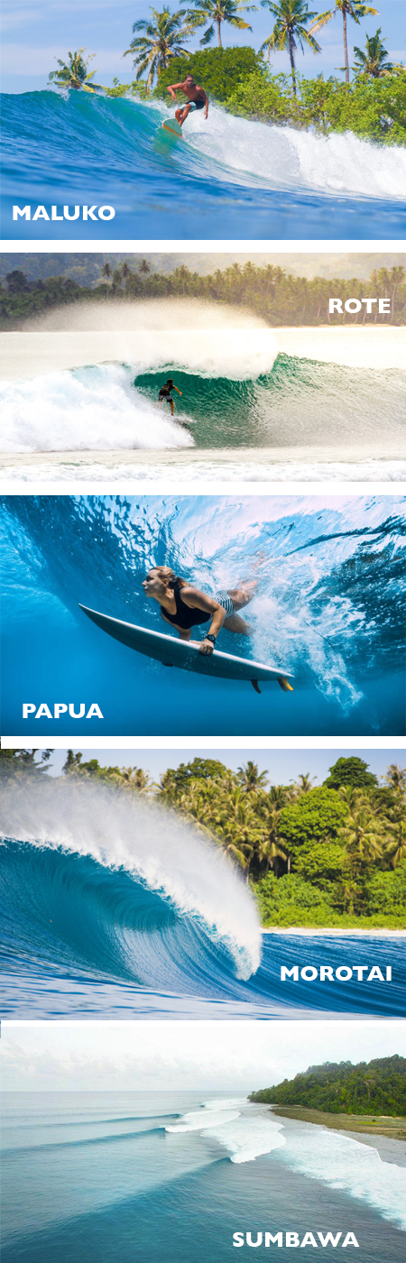 Raja Ampat archipelago is made up of 1,000 islands boasting a mix of steep hills, jungles, deserted white sandy beaches, hidden Surf breaks, caves, mushroom-shaped outcrops and clear turquoise water.